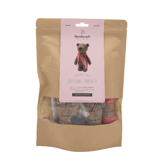 Was für ein hübscher kleiner Bär! Bobbi ist ein Klassiker, was ihn zu einem tollen Geschenk für deine Lieben oder für dich selbst macht. Dieses Paket enthält hochwertiges meliertes Garn, rotes Baumwollgarn und alle Kurzwaren, außer der Häkelnadel, welche du brauchst. Bobbi ist etwa 20 cm groß und wird mit einer 3,0 mm Häkelnadel gehäkelt.