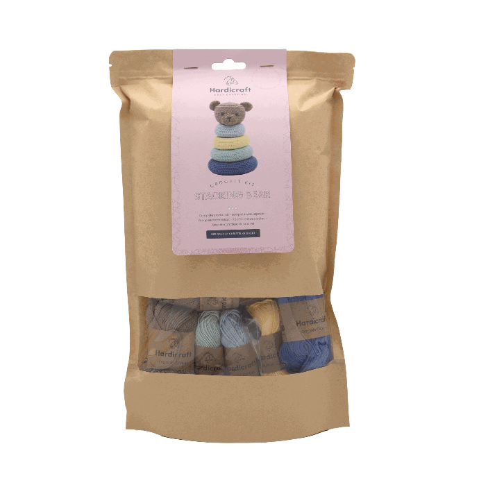The Stacking Bear is a great toy for all of the little ones in your life! The bright colours and soft yarn make it engaging and safe for small children to play with. This kit contains a pattern, quality 100% cotton yarn, and all of the materials needed to get to work (excl. crochet hook). The Stacking Bear is approximately 18 cm tall and is made with a 2.5 mm crochet hook.