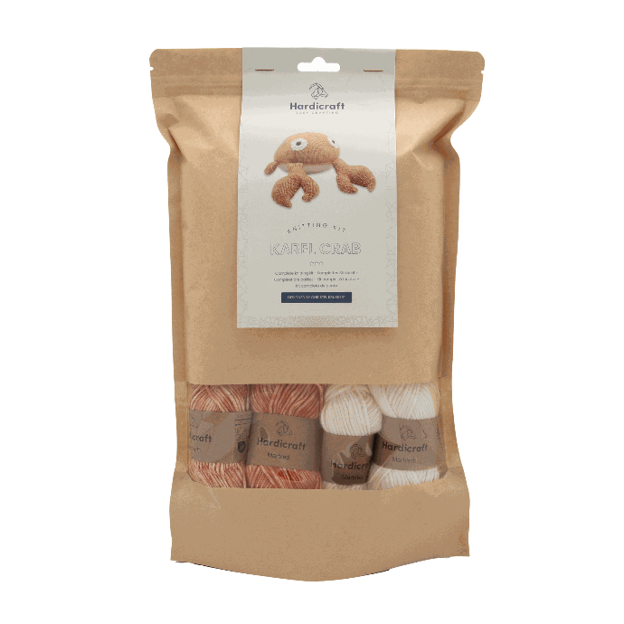 Karel Crab is part of our set with knitted sea creatures (Olivia Octopus/ Sterre Starfish/ Willy Whale/ Bart Blowfish/ Ties Turtle). Not only does he look very cute for a crab, but he doesn’t bite and is very soft to the touch. This kit contains a pattern, quality blended yarn and all the supplies needed to get to work (excl. knitting needles). Karel is about 25 cm long and is made with 3mm knitting needles.