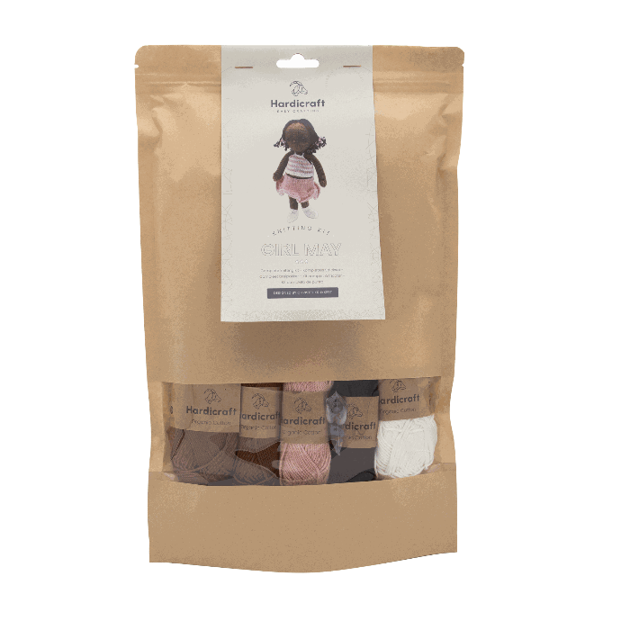 Meet May! Her outfit and socks can be removed and swapped with her friends June and April! This cute doll is a great addition to a toy collection. This kit contains a pattern, quality 100% cotton yarn, and all of the materials needed to get to work (excl. knitting needles). May is approximately 30 cm tall and is made with 3 mm knitting needles.