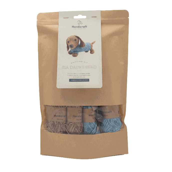 Woof Woof! This friendly little dog is sure to be the favourite of all dog lovers. This kit contains a pattern, quality blended yarn and all the materials needed to get started (excl. knitting needles). Ria is approximately 30 cm long and is made with 2,5 mm knitting needles.