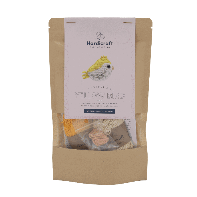 Dit schattige vogeltje is verkrijgbaar in drie kleuren (blauw/ geel/ rood). Het is een klein pakketje, bijvoorbeeld leuk om toe te voegen aan een cadeautje.Dit pakket bevat een patroon, kwaliteitsgaren van 100% katoen en alle fournituren die nodig zijn om aan het werk te gaan (excl. haaknaald). Het Vogeltje Geel is ongeveer 10 cm groot en is gemaakt met een haaknaald 2,5 mm.