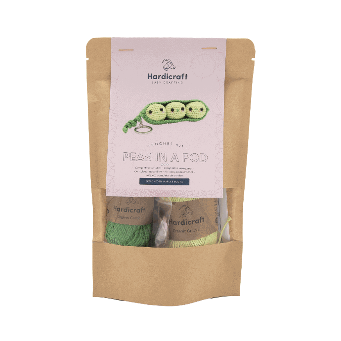 Pimp je tas met deze schattige erwtjes tashanger. Elke (school)tas of sleutelbos heeft er toch één nodig! Dit pakket bevat een patroon, kwaliteitsgaren van 100% katoen en alle fournituren die nodig zijn om aan het werk te gaan (excl. haaknaald). De Erwtjes zijn ongeveer 12 cm hoog en is gemaakt met een haaknaald 2,5 mm.