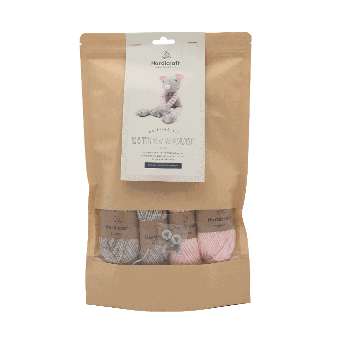 Esther Muis maakt onderdeel uit van Christel Krukkert haar nieuwste dierencollectie! Esther met haar lange armen en benen houdt van knuffelen met haar vriendjes! Dit pakket bevat een patroon, gemêleerd kwaliteitsgaren en alle materialen die nodig zijn om aan het werk te gaan (excl. breinaalden). Esther Muis is ongeveer 39 cm groot en is gemaakt met breinaalden van 3 mm.