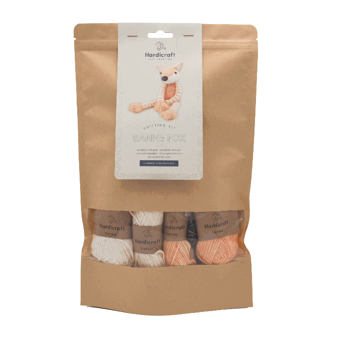 Sanne Vos maakt onderdeel uit van Christel Krukkert haar nieuwste dierencollectie! Sanne heeft lekker lange armen en benen om urenlang mee te kunnen knuffelen! Dit pakket bevat een patroon, gemêleerd kwaliteitsgaren en alle materialen die nodig zijn om aan het werk te gaan (excl. breinaalden). Sanne Vos is ongeveer 39 cm groot en is gemaakt met breinaalden van 3 mm.